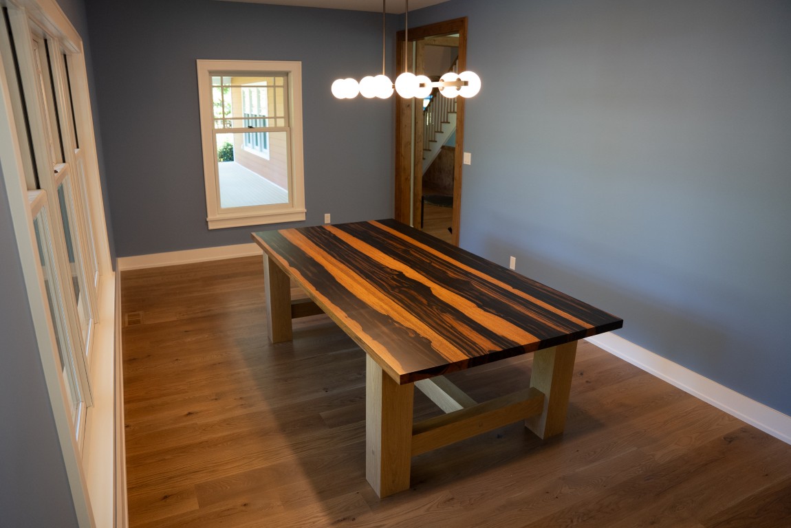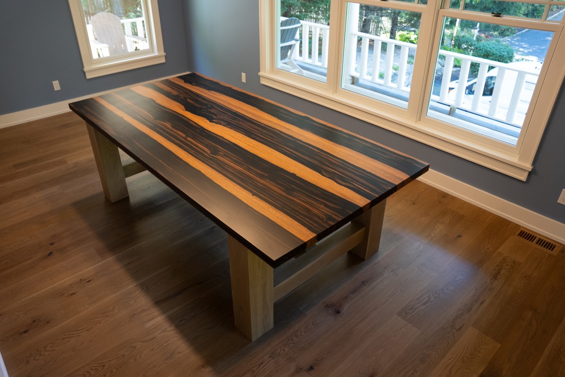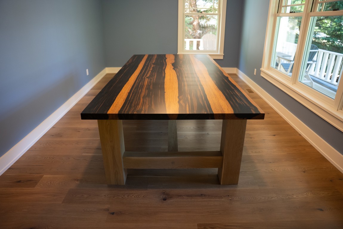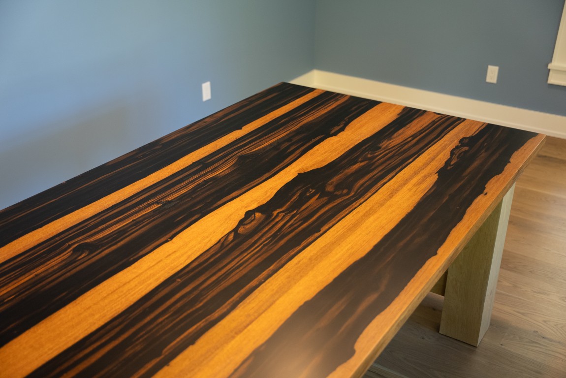 This table was born from a cache of Macassar ebony so scarce it spent over a decade untouched in Sulawesi, Indonesia—kept whole, still in boule form, its sequence of boards unbroken. The dealer who safeguarded it resisted selling for years, waiting for the right purpose. When I was entrusted with it, the intent was clear: to create a piece that honored both the material’s lineage and the restraint it took to preserve it.
